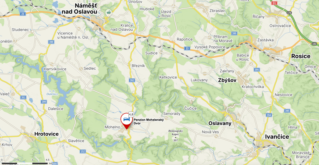Nejvhodnější způsob dopravy na svatbu je autem – v okolí Mohelenského dvoru je dostatek parkovacích míst.